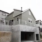 擁壁を兼ねた急傾斜地に建つ家