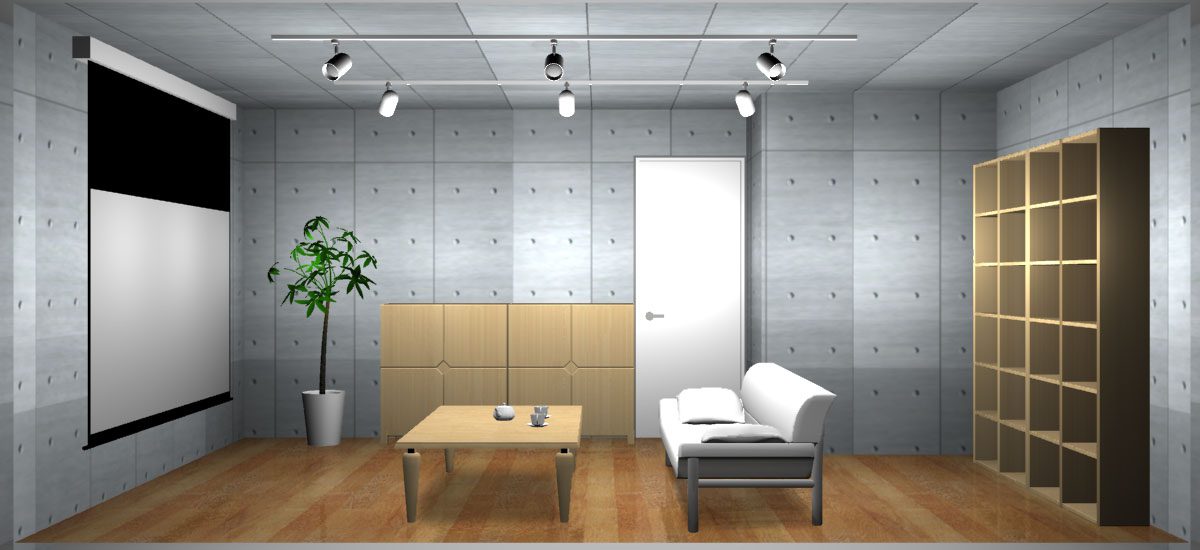 地下のホームシアタールームはコンクリート打ち放し仕上げ(大阪府)