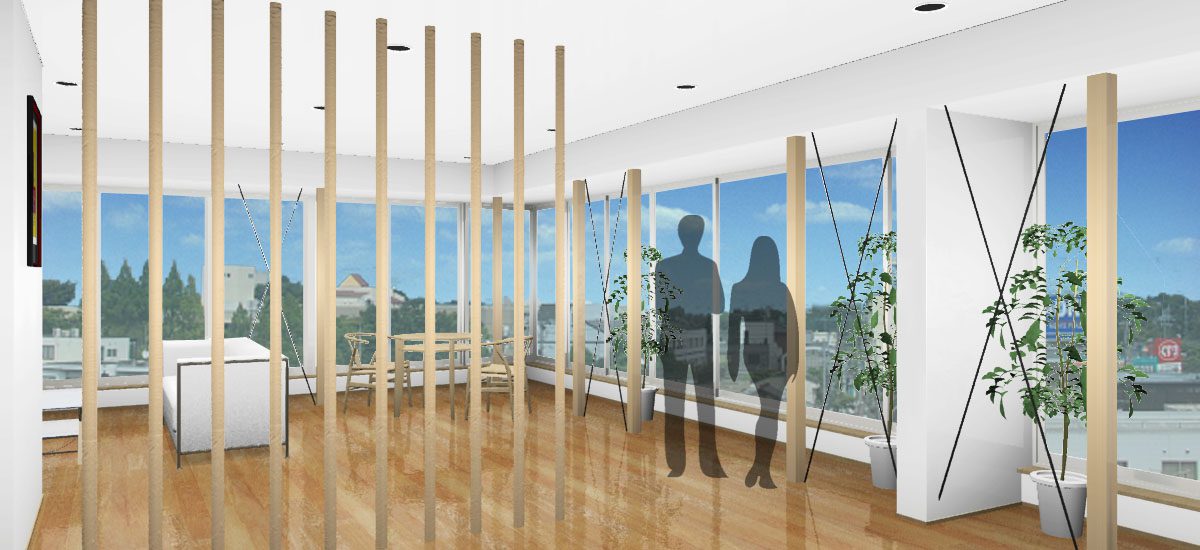 ワンフロアながらLDKも列柱で場を分ければ「囲い込まれる」のでとても落ち着ける(千葉県)