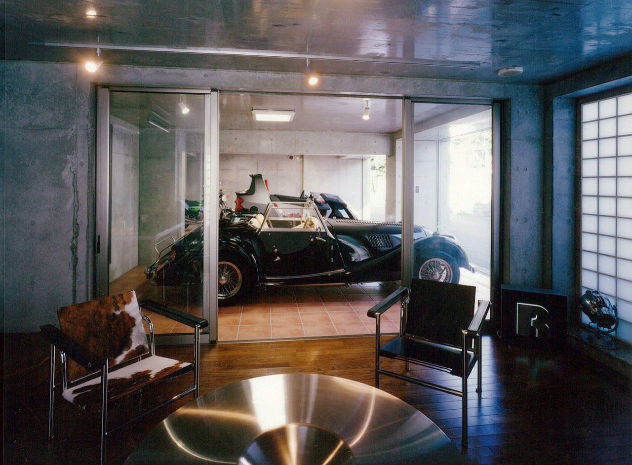 屋内に格納できるようにしたことで隣接する書斎から愛車を眺める時間はとても心休まるとのこと。