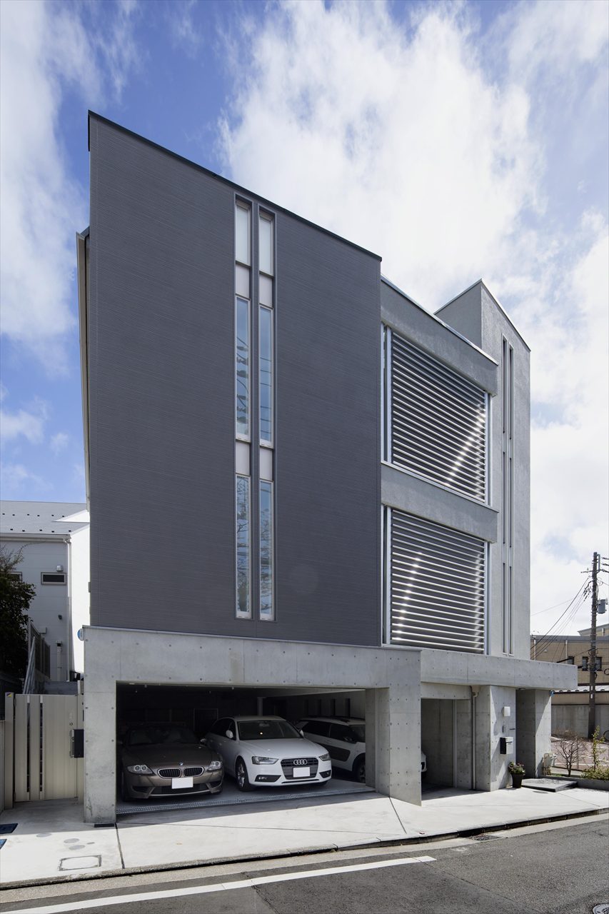 八王子市のセダン4台が入る大型ガレージ(道路側4台並列駐車)