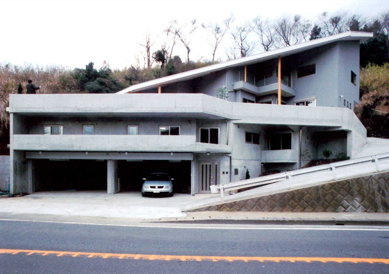 2.土地をそのままに建物の下へスロープで導くガレージ